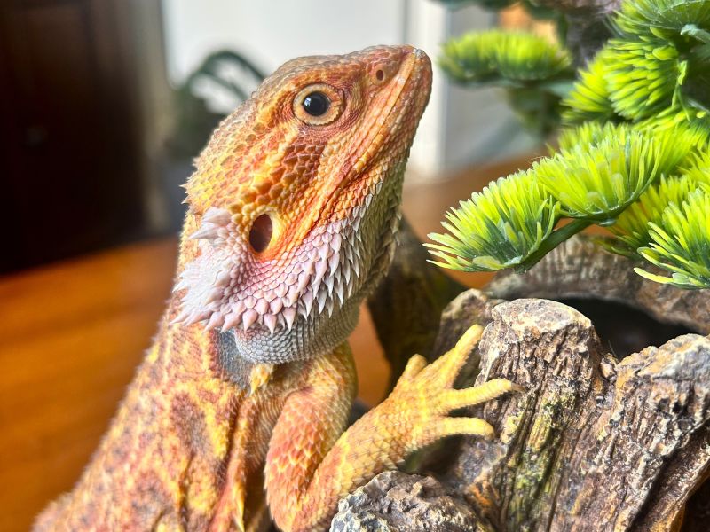 Large Fry was surrendered to us due to aggression and fear for the original owner’s safety… We are happy to report that these days she is a very sweet and friendly dragon! Kindness, gentleness, and proper care can go a long way with these guys. She still has her moments of defensiveness and shyness, but NEVER aggression.