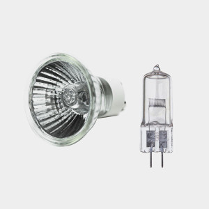 Halogen bulbs are the most efficient heat bulb and they only use a fraction of the electricity of an incandescent bulb. The downside is that many halogen bulbs project a very precise and limited area of heat so they do not do well in large enclosures. They work better for small tanks or basking spots. G9 Bi-Pin bulbs require unique fixtures.